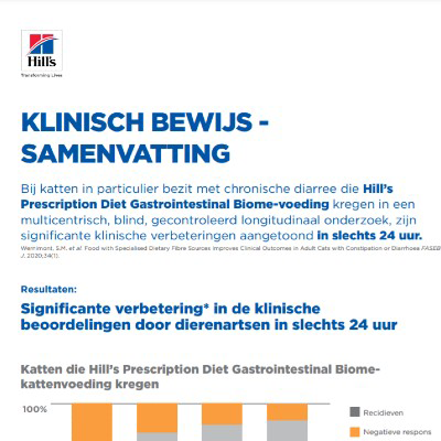 - Laat resultaten zien bij katten met constipatie en diarree² en honden met diarree³ in slechts 24 uur.